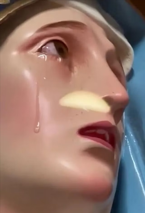 ·墨西哥科利馬州一圣母瑪利亞雕像“落淚”?當(dāng)?shù)亟淌冢嚎赡苁菨B水。