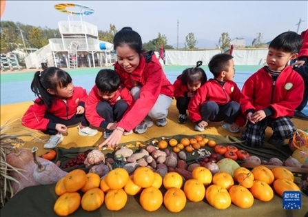 浙江省湖州市長(zhǎng)興縣李家巷鎮(zhèn)中心幼兒園開(kāi)展“冬日校園 樂(lè)享豐收”校園豐收節(jié)主題活動(dòng)。孩子們?cè)诶蠋煹膸ьI(lǐng)下參觀(guān)豐收節(jié)農(nóng)作物展、手工藝品展,還參加挑擔(dān)子、運(yùn)蘿卜、接力送玉米等趣味運(yùn)動(dòng),學(xué)習(xí)知識(shí)、鍛煉身體,感受豐收帶來(lái)的喜悅。