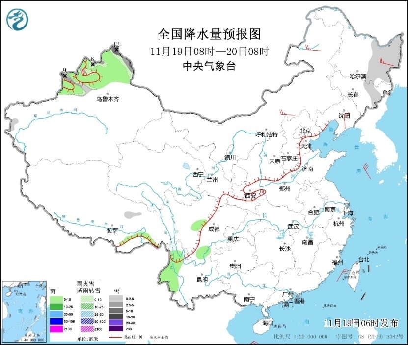 預(yù)計,今明兩天,新疆北部等地雨雪天氣明顯。其中今天,新疆北部和伊犁河谷、黑龍江東部、吉林東部等地部分地區(qū)有小雪或雨夾雪,新疆北部部分地區(qū)有中到大雪,局地暴雪(10~12毫米)。明天,新疆沿天山地區(qū)和東部、甘肅西部、內(nèi)蒙古西北部、西藏東部、川西高原北部等地部分地區(qū)有小雪或雨夾雪,新疆伊犁河谷和東部、西藏東北部等地部分地區(qū)有中到大雪(5~8毫米)。
