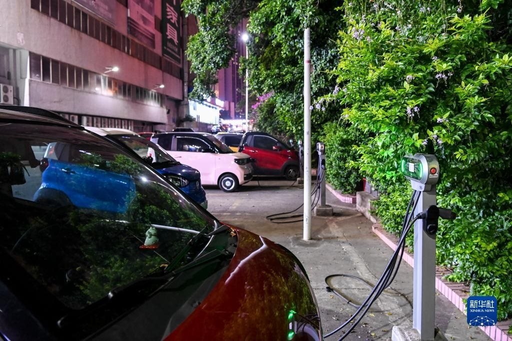 這是在廣西柳州市街頭拍攝的一處新能源汽車(chē)充電站(11月14日攝)。新華社記者 曹祎銘 攝