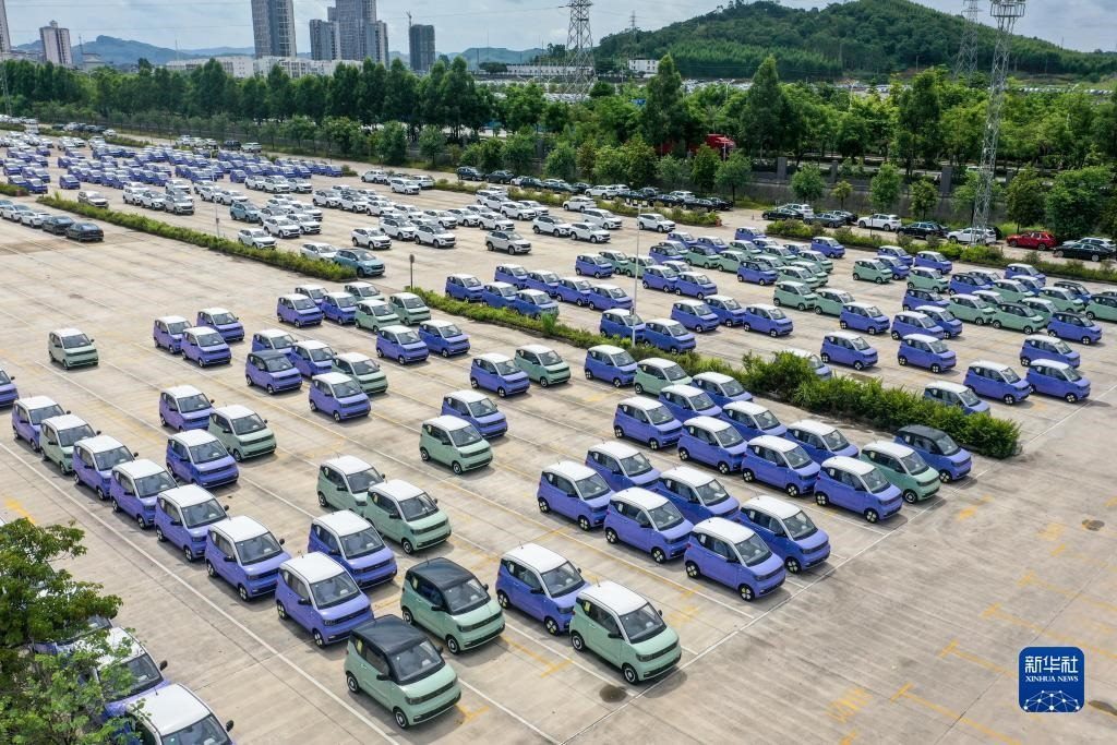 這是位于廣西柳州市的雒容汽車(chē)物流基地,一些出口的新能源汽車(chē)從這里裝車(chē)運(yùn)往各大出海港口(7月19日攝,無(wú)人機(jī)照片)。新華社記者 曹祎銘 攝