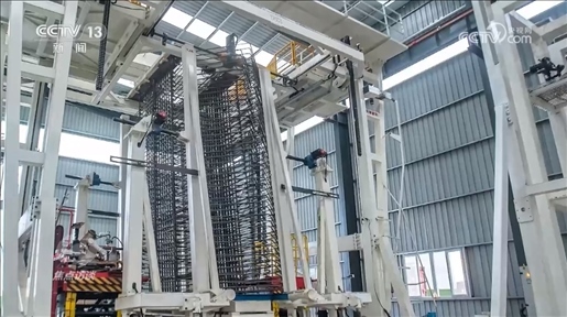 王輝:“通過(guò)手機(jī)掃描能夠數(shù)字化顯示鋼筋所有的生產(chǎn)信息,鋼筋智能生產(chǎn)的設(shè)備把原材料鋼筋做成單元件,通過(guò)這個(gè)設(shè)備的組裝形成了鋼筋片體。像這樣的片體5號(hào)塔要用3萬(wàn)個(gè),大概分成了3200組,每一組鋼筋用的部位都不一樣,為了精準(zhǔn)識(shí)別它用在哪里,每一組要給它一個(gè)識(shí)別信息,做一個(gè)二維碼,通過(guò)手機(jī)掃描就可以知道它要用在哪個(gè)地方?!?/p>