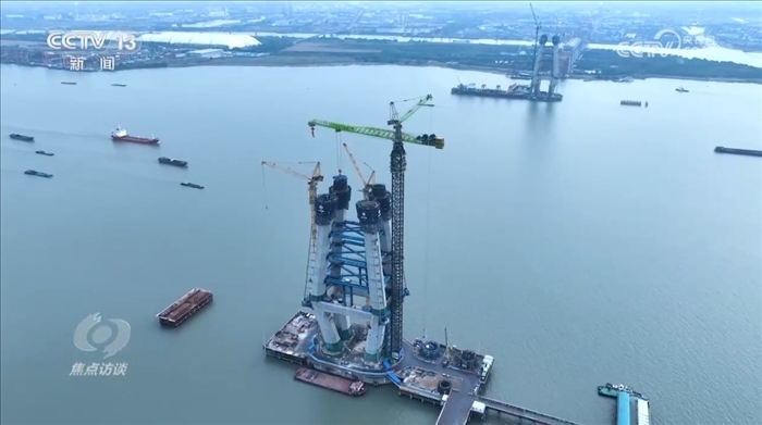 央視網(wǎng)消息(焦點(diǎn)訪談):近些年來(lái),中國(guó)在多個(gè)領(lǐng)域創(chuàng)造了大量的世界之最。這一個(gè)個(gè)的 “世界首次”“世界第一”深刻地改變了中國(guó),也令世界驚嘆。從今天起《焦點(diǎn)訪談》欄目推出“登攀”系列節(jié)目,我們來(lái)看一看中國(guó)奇跡誕生背后的故事。“逢山開(kāi)路、遇水架橋”,這是中國(guó)基建人的日常,他們不斷突破,創(chuàng)造了一個(gè)個(gè)登頂世界之最的基建名場(chǎng)面。今天我們要講的是一座修建當(dāng)中的長(zhǎng)江大橋——位于江蘇常州和泰州之間的常泰長(zhǎng)江大橋,作為世界上在建的最大跨度的公鐵兩用斜拉橋,這座大橋在建設(shè)的過(guò)程當(dāng)中遇到了很多困難,也頻頻上演著突破和創(chuàng)新。