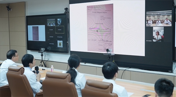 今年3月,吳德熙(左二)和同事與多米尼克開展遠(yuǎn)程會(huì)診