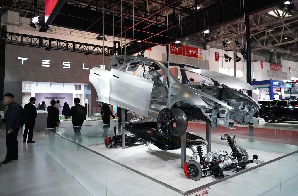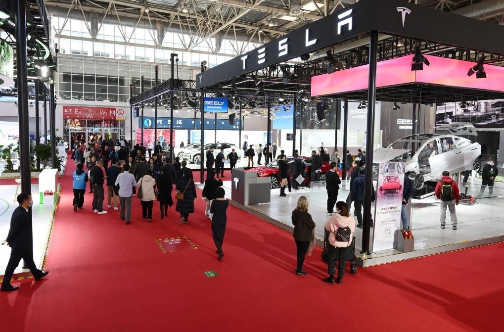 11月30日在鏈博會(huì)智能汽車鏈展區(qū)拍攝的特斯拉展位。新華社記者 任超 攝