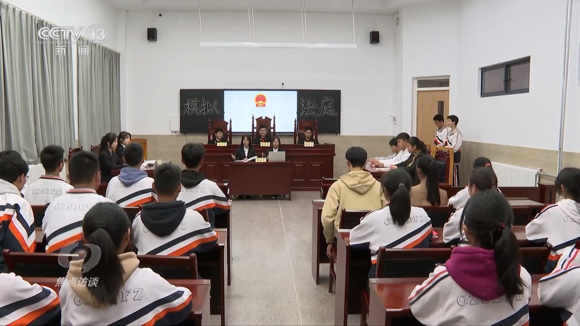 貴州師大附中高二學生朱培源正在參加學校組織的“模擬法庭”,他模擬的角色是審判長。這次“庭審”模擬的是前幾年一起關(guān)于公民受教育權(quán)受到侵害的案件:某鄉(xiāng)鎮(zhèn)的一個家庭放任正在讀初中的孩子輟學,經(jīng)多次走訪溝通無效后,鎮(zhèn)人民政府一紙訴狀把家長告上法庭。在“模擬法庭”上,朱培源宣讀了憲法中的相關(guān)條文,并模擬宣判。