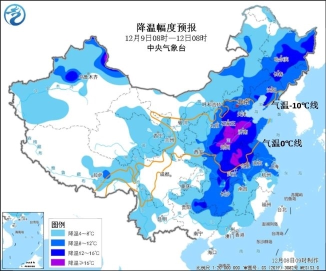 大風(fēng)降溫預(yù)報:預(yù)計9日至11日,受較強(qiáng)冷空氣影響,東北地區(qū)、華北、黃淮、江漢、江淮、江南西部和北部等地氣溫下降6~10℃,東北地區(qū)中部、華北南部、黃淮等地降溫幅度可達(dá)12℃以上;12日早晨,最低氣溫0℃線將南壓到湖北中部至蘇皖北部一帶。期間,長江以北大部地區(qū)有4~6級偏北風(fēng),陣風(fēng)7~8級;渤海、黃海、東海海域有5~7級風(fēng)、陣風(fēng)8~9級。