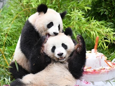 ·柏林動物園為即將回國的大熊貓雙胞胎“夢想”和“夢圓”舉辦歡送活動。