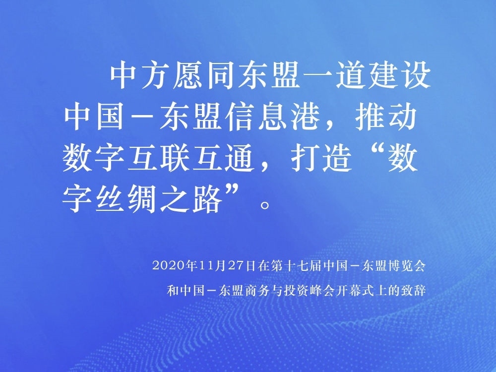 2014年,中國(guó)提出與東盟十國(guó)共建“中國(guó)-東盟信息港”倡議,得到了東盟各國(guó)的積極響應(yīng)。在第十七屆中國(guó)-東盟博覽會(huì)和中國(guó)-東盟商務(wù)與投資峰會(huì)開幕式上,習(xí)近平總書記提出“提升科技創(chuàng)新,深化數(shù)字經(jīng)濟(jì)合作”的重要倡議,表示中方愿同東盟各國(guó)攜手合作,抓住新一輪科技革命和產(chǎn)業(yè)變革機(jī)遇,發(fā)揮互補(bǔ)優(yōu)勢(shì),聚焦合作共贏。
