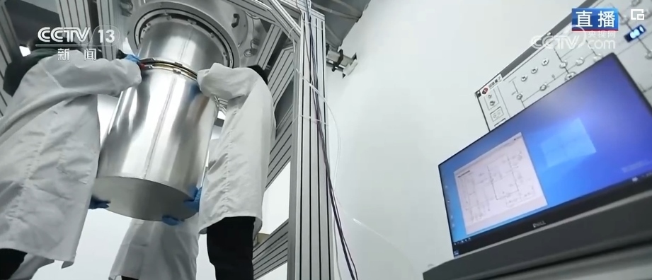 完成復(fù)雜的運算僅靠主板是不夠的。量子芯片相當于傳統(tǒng)計算機的CPU,也就是“大腦”,但是想讓芯片正常工作,所需要的環(huán)境是非??量痰?。在現(xiàn)場,工作人員正在調(diào)試的就是給這塊芯片提供理想工作環(huán)境的低溫低噪運行裝置,芯片就是在這個白色圓桶狀主體內(nèi)工作,圓筒里會形成接近“絕對零度”,也就是約在零下273.15℃的環(huán)境,并且還要與外界屏蔽隔離。除了低溫、低噪之外,這套系統(tǒng)上還安裝了很多減震設(shè)備,也是最大程度避免外界環(huán)境影響到芯片的運行。