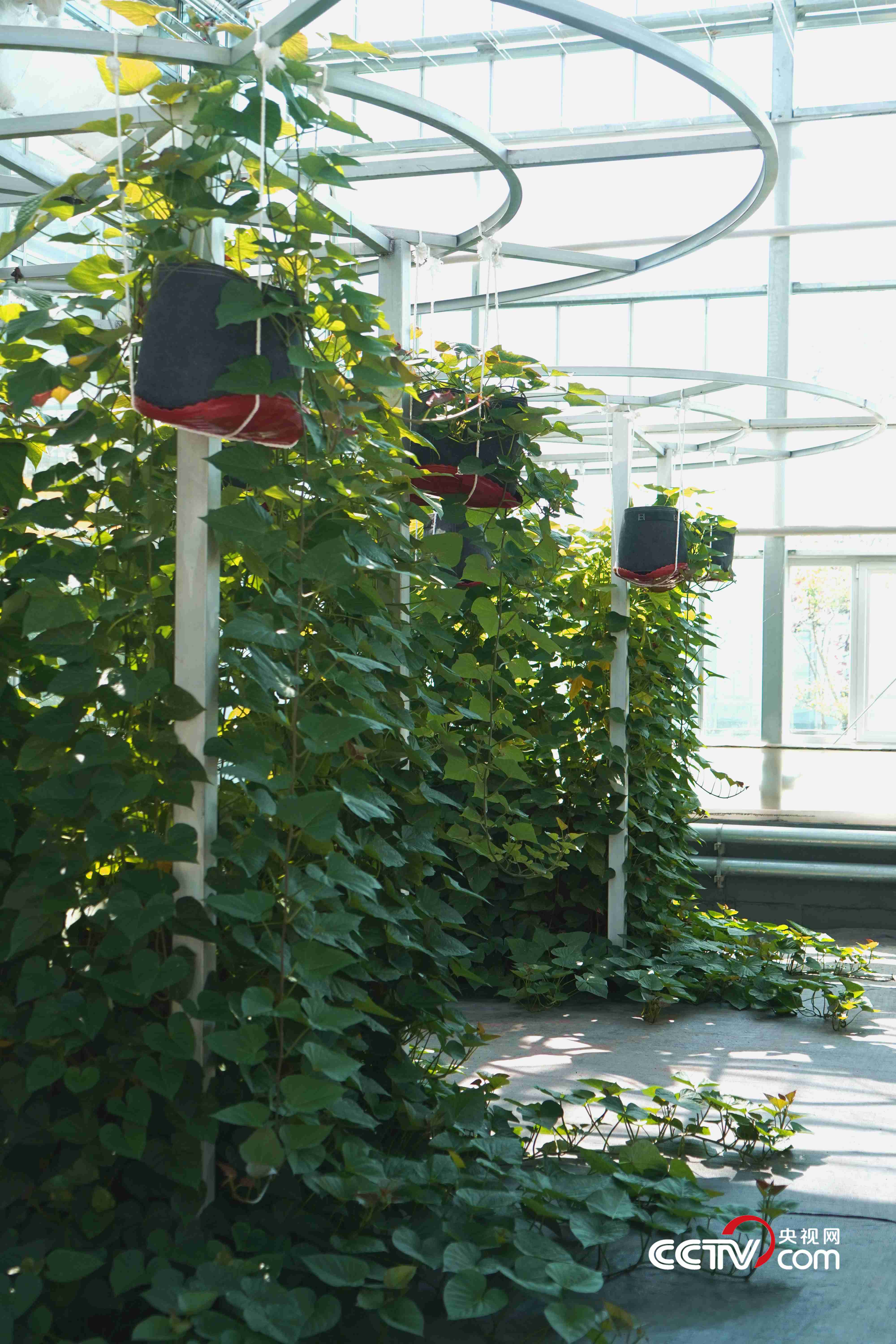 空中紅薯則利用深液流栽培模式,將紅薯由傳統(tǒng)的土壤栽培轉(zhuǎn)變?yōu)樗耘嗟哪J?。陸璐表示,其特點(diǎn)體現(xiàn)在水生根系能為植株提供充足的水肥,壓蔓產(chǎn)生的不定根成為儲(chǔ)藏根,實(shí)現(xiàn)了根系的分工合作,能夠達(dá)到一年種植多年采收的效果?!皳?jù)測(cè)算,單株冠幅在60平方米的‘紅薯樹’一年可產(chǎn)1200多斤的紅薯。”這種栽培模式不僅能帶來(lái)經(jīng)濟(jì)效益,在農(nóng)業(yè)觀光、科普教育方面也有獨(dú)特價(jià)值。