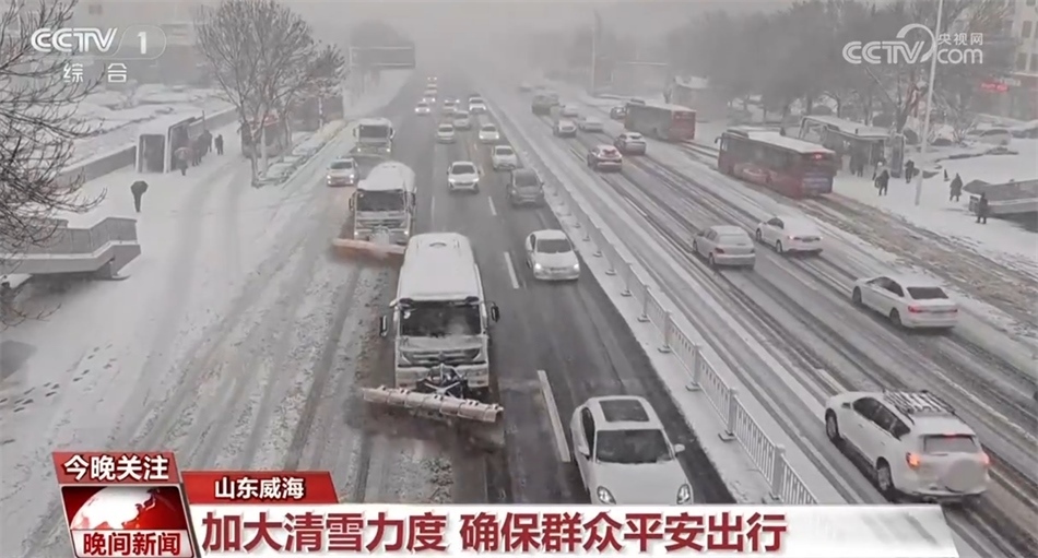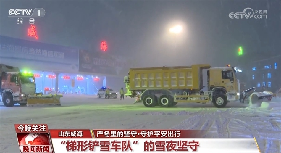 從16日開(kāi)始,山東威海迎來(lái)強(qiáng)降雪天氣,晚上七點(diǎn)多,威海收費(fèi)站負(fù)責(zé)高速公路養(yǎng)護(hù)的張輝,正帶著工友們用鏟車(chē)和裝載車(chē)緊張地進(jìn)行道路積雪的清除工作。張輝告訴記者,所有養(yǎng)護(hù)人員凌晨三點(diǎn)就起床開(kāi)始清雪。梯形車(chē)隊(duì)出發(fā)后,張輝又組織人員對(duì)拋錨的車(chē)輛進(jìn)行救援,為滯留的貨車(chē)司機(jī)發(fā)放食品。
