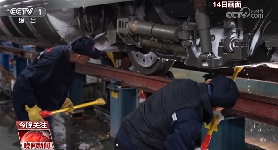 先除冰,再檢測(cè),列車(chē)檢修員們化身雪夜除冰人,一列車(chē)下來(lái)最快要半個(gè)小時(shí),如果趕上冰層厚的列車(chē)則需要三個(gè)小時(shí)。
