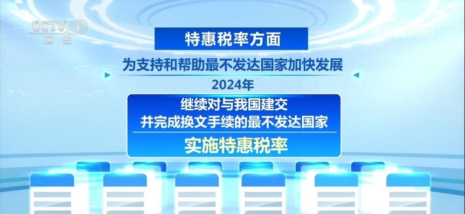 此外,在特惠稅率方面,為支持和幫助最不發(fā)達(dá)國家加快發(fā)展,2024年繼續(xù)對與我國建交并完成換文手續(xù)的最不發(fā)達(dá)國家實施特惠稅率。