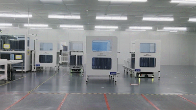 龍港新城國(guó)電投新能源5GW高效異質(zhì)結(jié)電池及組建量產(chǎn)基地生產(chǎn)車間。新華網(wǎng)發(fā) 胡炎楨攝 陳曉光制(動(dòng)圖)