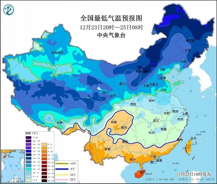 央視網(wǎng)消息:據(jù)中央氣象臺(tái)網(wǎng)站消息,中央氣象臺(tái)12月23日18時(shí)繼續(xù)發(fā)布低溫藍(lán)色預(yù)警:預(yù)計(jì),23日20時(shí)至25日08時(shí),江淮、江南、華南以及山東西北部和半島地區(qū)、河北南部和西北部、山西北部、陜西北部等地日最低氣溫較歷史同期偏低5~7℃,其中浙江中部、江西中部等地偏低7℃以上,最低氣溫0℃線(xiàn)將位于貴州南部至華南北部一帶。