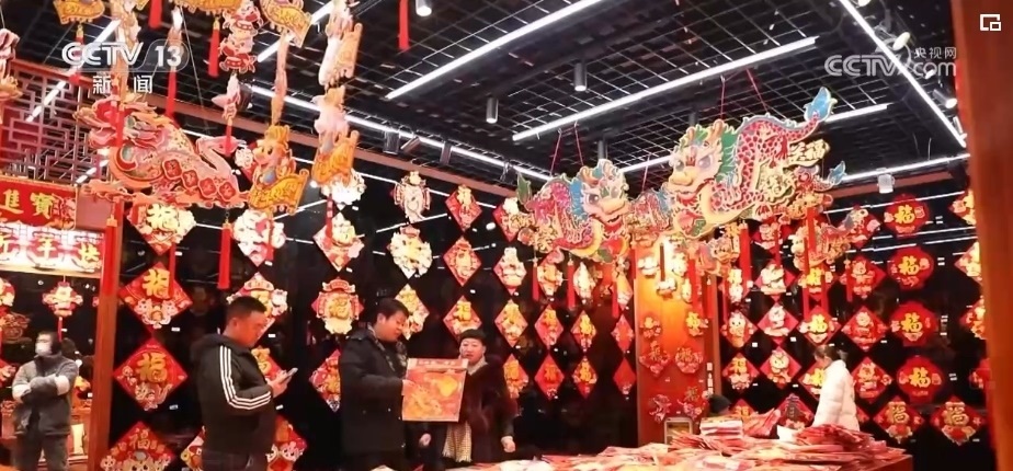 在浙江義烏國(guó)際商貿(mào)城,來(lái)自全國(guó)各地的采購(gòu)商們抓緊選購(gòu)著年貨。市場(chǎng)里的龍?jiān)禺a(chǎn)品頗受客商們歡迎,對(duì)聯(lián)、年畫(huà)、福字、紅包等產(chǎn)品,將從浙江義烏發(fā)往全球各地。