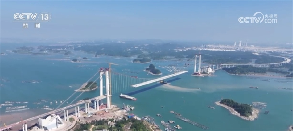 ??????這里是廣西欽州市的龍門大橋,從空中俯瞰,建設中的龍門大橋宛若一條巨龍橫臥于碧海之上。龍門大橋全長7.6公里,是目前廣西在建的最長跨海大橋。通車后,防城港與欽州港的時空距離由原來的1.5小時縮減至25分鐘左右,助力西部陸海新通道建設。