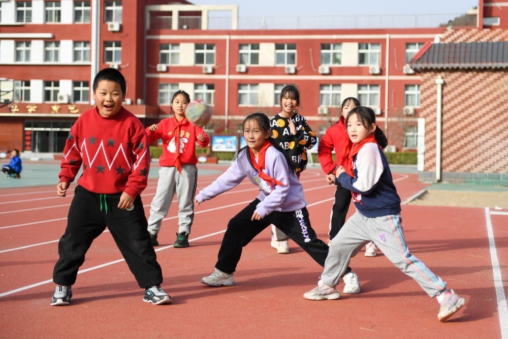 北京市門頭溝妙峰山民族學(xué)校的學(xué)生們?cè)谏象w育課(12月6日攝)。新華社記者 鞠煥宗 攝