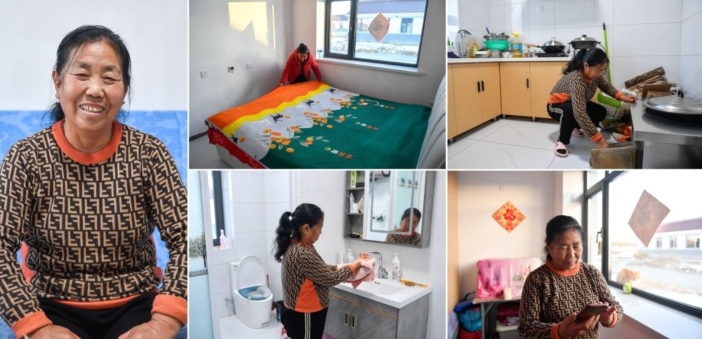 吉林省舒蘭市開原鎮(zhèn)新開村村民徐中仁在新房子中的生活場(chǎng)景(12月7日攝,拼版照片)。徐中仁說,“土炕”變“大床”,WIFI、自來水、室內(nèi)馬桶一應(yīng)俱全,新房子讓她體驗(yàn)上了“城里的生活”。新華社記者 許暢 攝