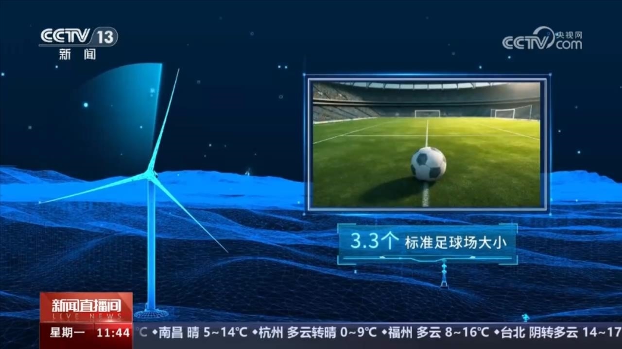 173米,是歐瑪亭嘎風(fēng)電場的風(fēng)機(jī)葉片直徑,其掃風(fēng)面積相當(dāng)3.3個標(biāo)準(zhǔn)足球場大小。