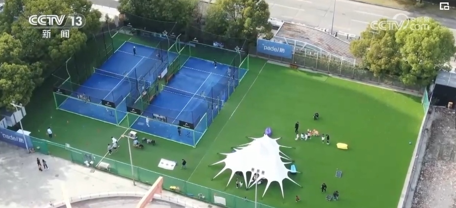 在上海浦東的創(chuàng)意園區(qū)內,藏著一個板式網(wǎng)球和匹克球的運動場,不少人結伴前來體驗。