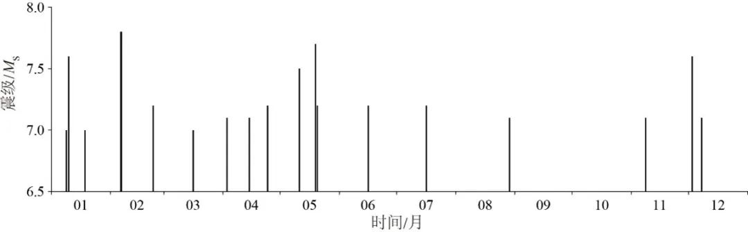 2023年95%的全球7級以上地震發(fā)生在歐亞地震帶和澳大利亞板塊東北邊界。其中歐亞地震帶發(fā)生7級以上地震7次,澳大利亞板塊東北邊界發(fā)生7級以上地震11次。