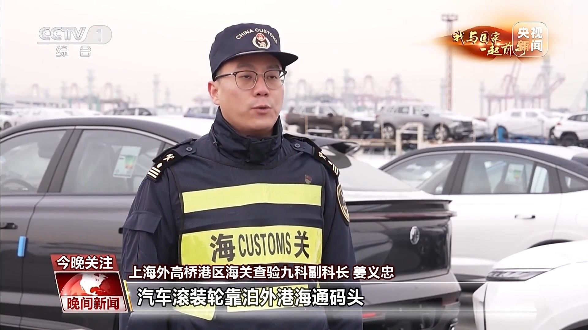 上海外高橋港區(qū)海關(guān)查驗九科副科長 姜義忠:2023年平均每天都有2—3艘汽車滾裝輪靠泊外港海通碼頭。汽車出口可以實現(xiàn)“即報即放”“即查即放”,確保汽車出口“零延時”。