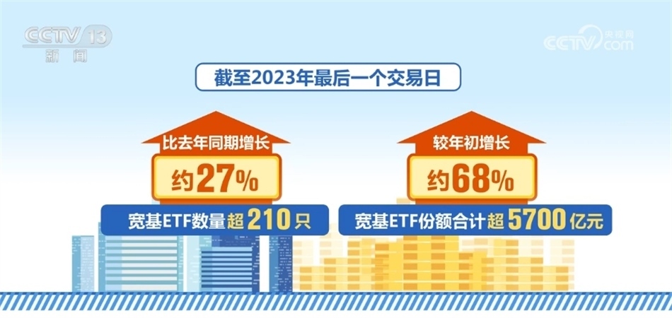 總臺央視記者 董彬:根據(jù)投資標(biāo)的的不同,股票型ETF可以劃分為寬基ETF、行業(yè)ETF、主題ETF、風(fēng)格ETF等。其中,寬基ETF是追蹤指數(shù)覆蓋面較廣泛、具有相當(dāng)代表性的一類產(chǎn)品。我們通過數(shù)據(jù)分析發(fā)現(xiàn),2023年全年寬基ETF增幅較為明顯。