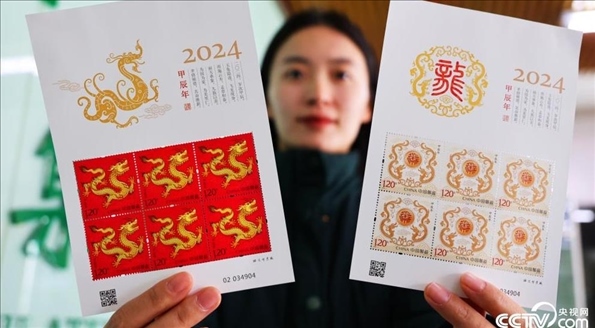 中國郵政定于2024年1月5日發(fā)行《甲辰年》特種郵票1套2枚,郵票圖案名稱分別為“天龍行健”和“辰龍獻瑞”。