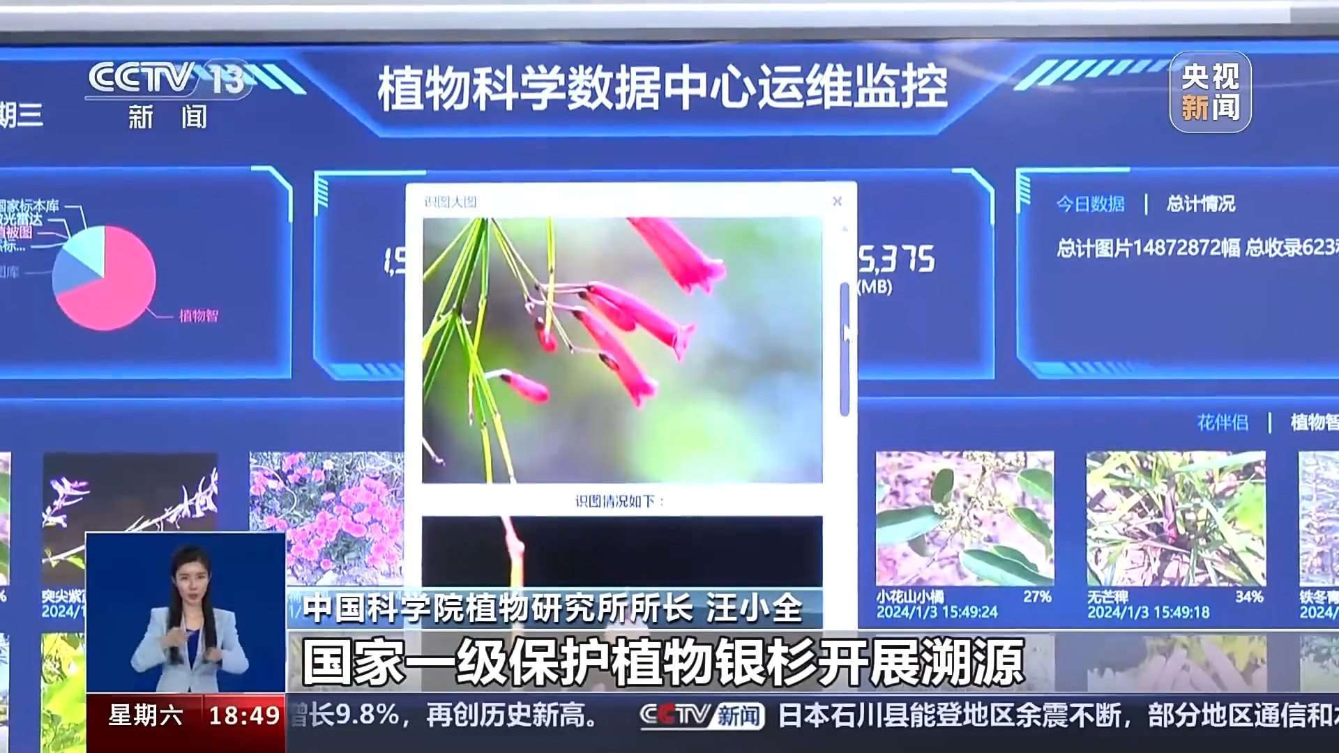 中國(guó)科學(xué)院植物研究所所長(zhǎng) 汪小全:我們這個(gè)平臺(tái),中國(guó)的植物物種絕大部分在這當(dāng)中都有,每一個(gè)省份,每一個(gè)縣,精確到縣級(jí),都有一個(gè)詳細(xì)的物種清單,而且這些物種跟它的各種圖片、各種分布、各種物候,所有的信息都是關(guān)聯(lián)在一起的,就是一站式的。