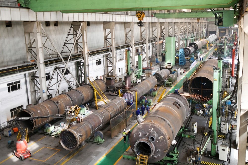 工人在哈電集團哈爾濱鍋爐廠有限責任公司生產(chǎn)車間作業(yè)(2023年4月12日攝)。新華社記者 王建威 攝