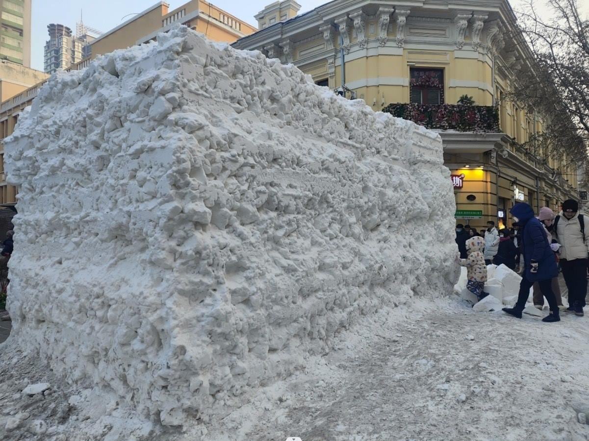 哈爾濱中央大街上未雕刻的雪胚