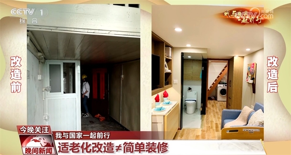 王晨為王湘蓉家進(jìn)行了全屋適老化改造,專門為她家打造了整整一面墻的柜子,要求他們把家里的東西進(jìn)行有效收納,大容量的收納空間、無高差的設(shè)計(jì)、安全扶手的安裝等都得到因地制宜地應(yīng)用,改造后的老房煥然一新。