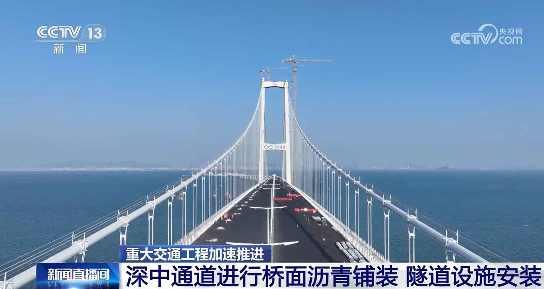 逢山開路,遇水架橋。在當(dāng)前世界上綜合建設(shè)難度最高的跨海集群工程——深中通道建設(shè)現(xiàn)場(chǎng),3000多名建設(shè)者正在加緊橋面瀝青鋪裝、隧道內(nèi)機(jī)電及交通安全設(shè)施安裝等,為今年6月具備通車條件做沖刺。