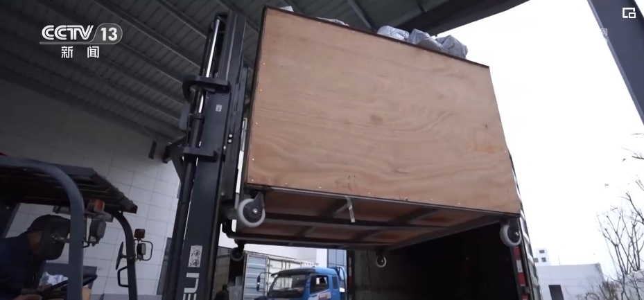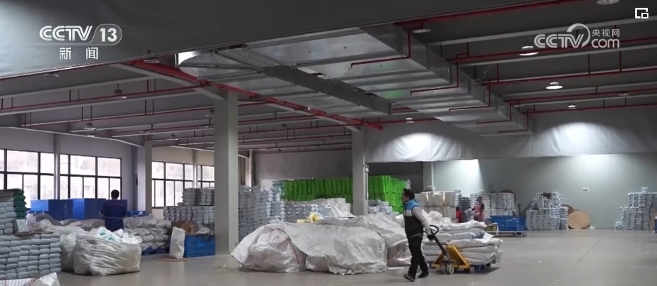 在浙江長興的一家企業(yè)廠房里,廠家工作人員根據(jù)訂單快速分發(fā)、貼單、裝貨;快遞小哥則在一樓出貨區(qū),將叉車上的貨物運(yùn)上郵政貨車。
