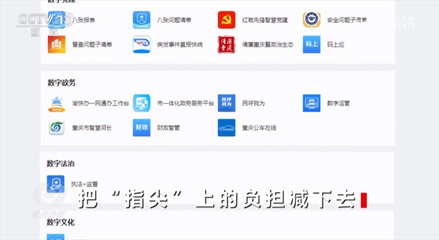 工作重心向基層服務(wù)轉(zhuǎn)變,才能切實(shí)看到為基層減負(fù)的實(shí)效。2021年,重慶市一體化、智能化、數(shù)字化政務(wù)工作平臺(tái)“渝快政”正式發(fā)布。“渝快政”在全市范圍內(nèi)實(shí)現(xiàn)了上下層級、橫向跨部門之間的協(xié)同,一個(gè)“渝快政”App就可以支持過去40多項(xiàng)高頻次的政務(wù)辦公應(yīng)用,過去各部門App的相應(yīng)功能、各種工作群都整合在了“渝快政”一個(gè)App里面。一表通、“141”基層智治平臺(tái)也已經(jīng)接入了“渝快政”,正在向全市推廣?,F(xiàn)在,文勇手機(jī)里的53個(gè)工作群已經(jīng)解散,郝歡手機(jī)里十幾個(gè)部門App也已經(jīng)被整合到“渝快政”。?