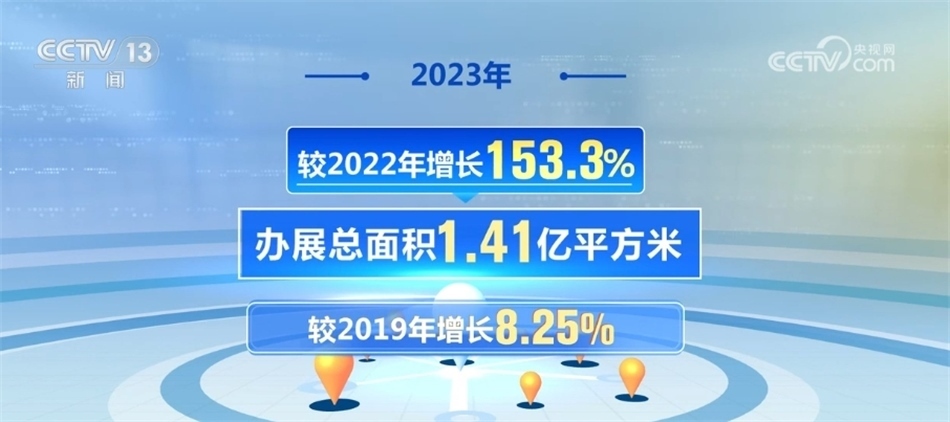 《中國展覽經(jīng)濟(jì)發(fā)展報告2023》統(tǒng)計數(shù)據(jù)顯示,2023年中國共舉辦經(jīng)貿(mào)類展會3923場,較2022年增長117.1%,較2019年增長10.6%;辦展總面積1.41億平方米,較2022年增長153.3%,較2019年增長8.25%。經(jīng)貿(mào)類展會數(shù)量和展出面積超越疫情前水平,展覽業(yè)呈現(xiàn)全面恢復(fù)態(tài)勢。