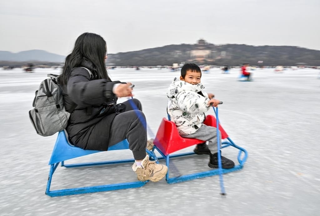 1月1日,游客在頤和園冰場玩冰車。新華社記者 陳曄華 攝