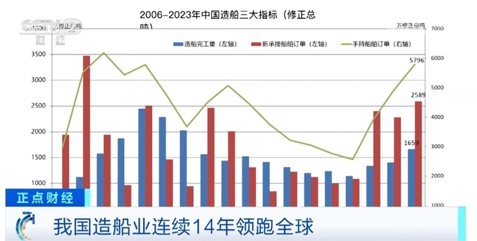 央視網(wǎng)消息:1月15日,工業(yè)和信息化部發(fā)布的最新數(shù)據(jù)顯示,我國造船業(yè)三大指標(biāo)連續(xù)14年位居世界第一,成為全球唯一一個(gè)三大指標(biāo)實(shí)現(xiàn)全面增長的國家。?