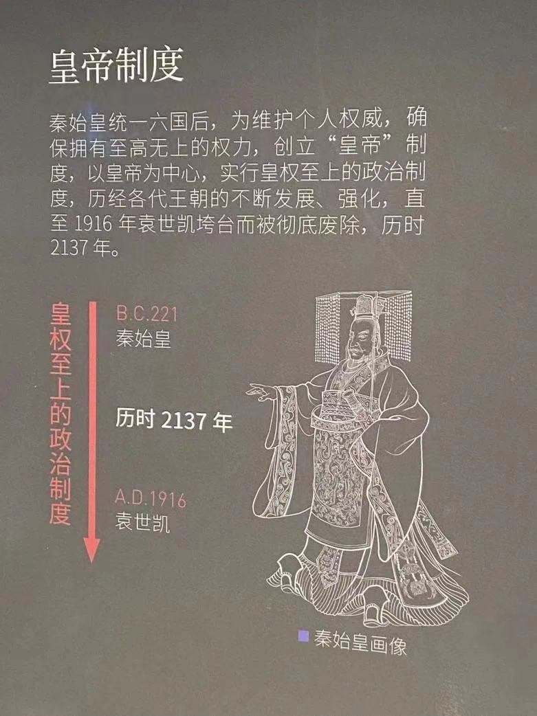 陜歷博秦漢館中的展板標(biāo)明皇帝制度結(jié)束于“袁世凱”。圖源:“今西安”微信公眾號(hào)