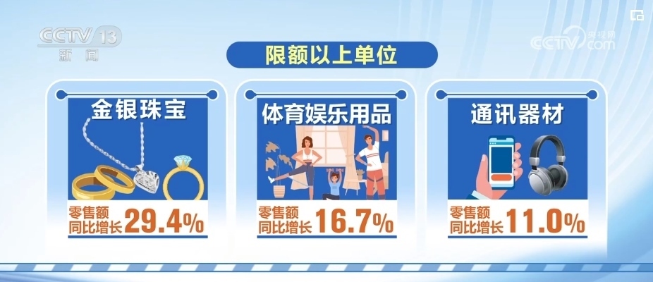 2023年12月,社會(huì)消費(fèi)品零售總額4.36萬億元,同比增長7.4%。其中,商品銷售穩(wěn)步增長,升級類商品消費(fèi)需求增長明顯。商品零售額同比增長4.8%,限額以上單位金銀珠寶、體育娛樂用品、通訊器材零售額同比分別增長了29.4%、16.7%和11.0%。