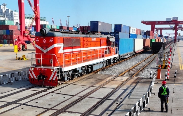 水路大進(jìn)大出,鐵路風(fēng)馳電掣。元旦當(dāng)天,連云港新年開行的首趟中歐班列載著汽車配件、家用電器等,從中哈物流合作基地出發(fā),駛往中亞國(guó)家;同日,南通海安物流基地內(nèi),一列滿載貨物的班列鳴笛啟程開往越南河內(nèi)。有去有回,不久之后,“鋼鐵駝隊(duì)”會(huì)把來(lái)自歐洲、中亞和東南亞的機(jī)械、木材等運(yùn)回中國(guó),開啟新一輪國(guó)際循環(huán)。