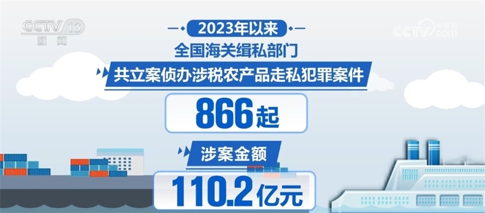 針對農產品走私問題,海關緝私部門加大打擊凍品、煙草、水果、食糖、糧食等農產品走私力度,推動強化對運輸、倉儲、銷售環(huán)節(jié)的清查整治。2023年以來,共立案偵辦涉稅農產品走私犯罪案件866起,涉案金額110.2億元。