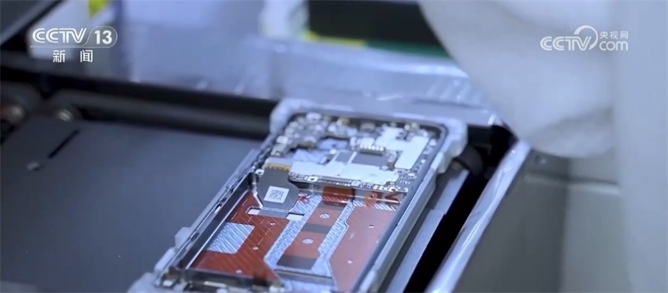 手機(jī)自動(dòng)化回收企業(yè)負(fù)責(zé)人 李燦康:在不拆機(jī)的情況下,檢測(cè)手機(jī)內(nèi)部是否有維修情況,檢測(cè)效率從進(jìn)到出只需要7—8秒。