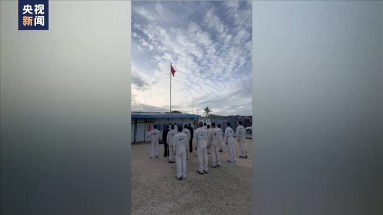 ·中國(guó)駐瑙魯使館復(fù)館小組29日舉行升國(guó)旗儀式。時(shí)隔近19年,五星紅旗再次在瑙魯升起。