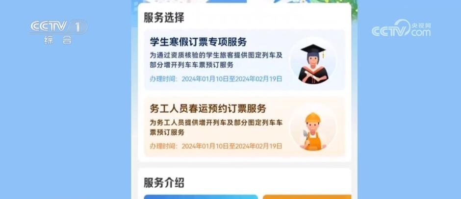 今年春運,鐵路部門推出預(yù)約購票和預(yù)填購票兩項購票新方式,預(yù)約購票功能專門針對學(xué)生和務(wù)工人員。符合條件的學(xué)生旅客(已通過學(xué)生優(yōu)惠資質(zhì)核驗且有剩余優(yōu)惠乘車次數(shù))可通過“學(xué)生寒假訂票專項服務(wù)”專區(qū)預(yù)約購買春運期間的火車票。已通過實名制核驗的務(wù)工人員可通過“務(wù)工人員春運預(yù)約訂票服務(wù)”專區(qū)預(yù)約購買春運期間火車票。