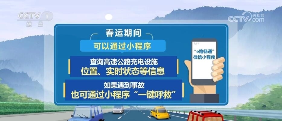 為提升今年春運服務(wù),交通運輸部還上線“e路暢通”微信小程序,春運期間,大家可以通過小程序,查詢高速公路充電設(shè)施位置、實時狀態(tài)等信息,如果遇到事故,也可通過小程序“一鍵呼救”。