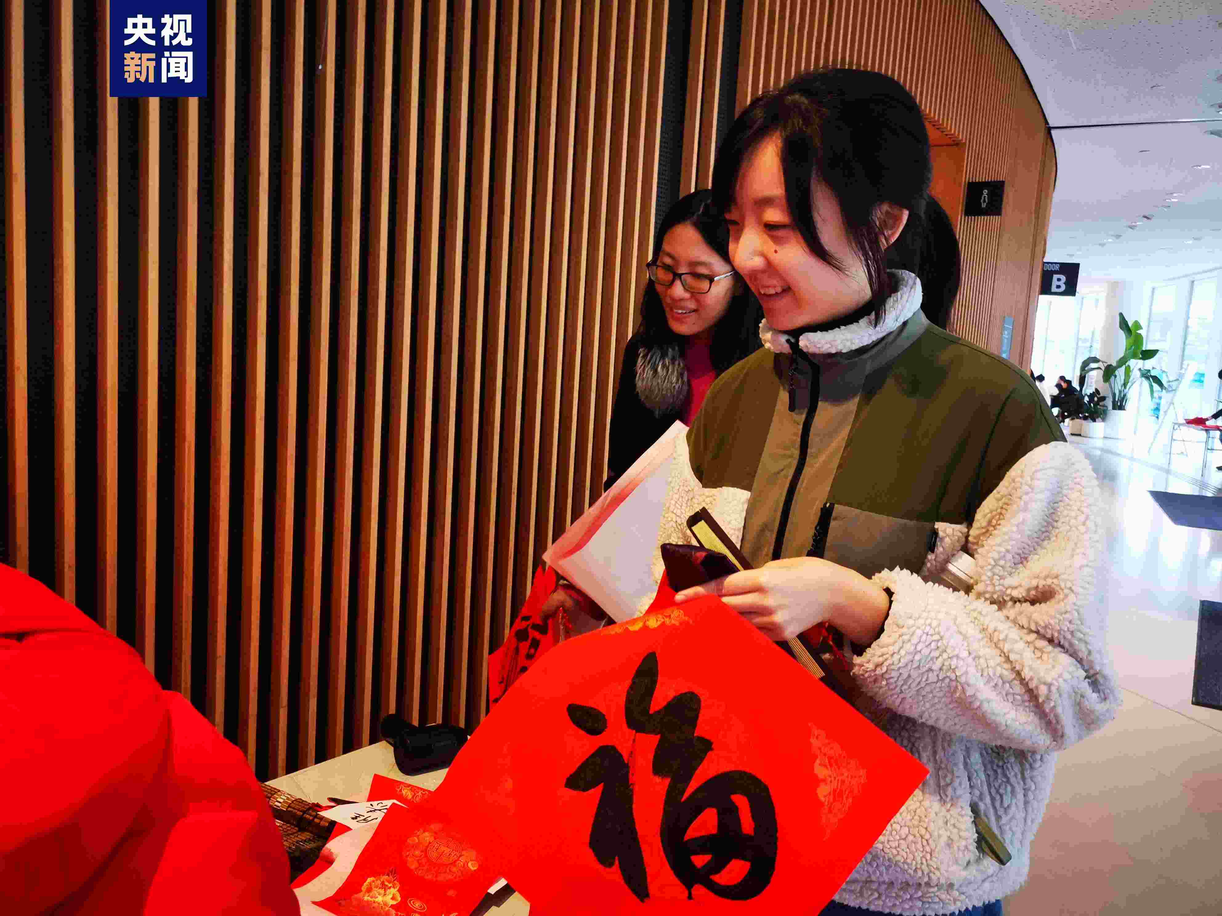 除了佩戴小龍帽,大家或手拿龍玩偶,或高舉福字,或展示對(duì)聯(lián),在歡聲笑語(yǔ)中共同迎春。