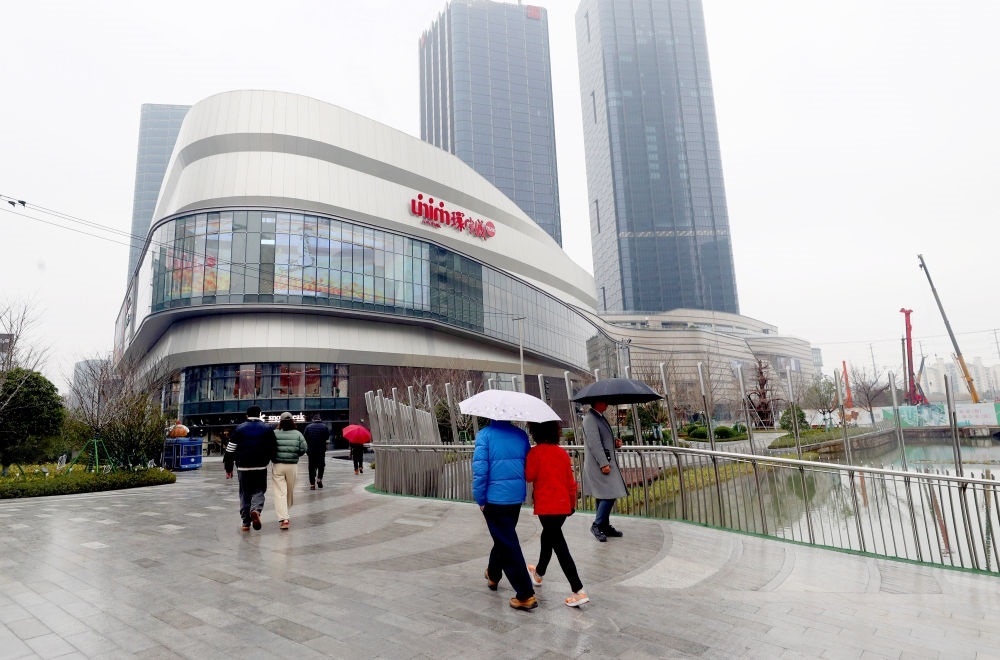 市民走向上海市普陀區(qū)真如環(huán)宇城MAX購(gòu)物中心(2024年1月20日攝)。新華社記者 方喆 攝